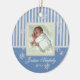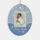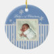 Blue stripes and snowflakes photo ornament. Add any photo and change text. Great for newlyweds, new baby, family photos and more. More shapes and colours available :