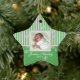 Festive green stripes and snowflakes photo ornament. Add any photo and change text. Great for newlyweds, new baby, family photos and more.