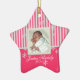 Perfect pink stripes and snowflakes photo ornament. Add any photo and change text. Great for newlyweds, new baby, family photos and more.