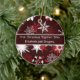 A beautiful and elegant Christmas ornament with white and dark pink snowflakes on a wine red background. The text says "First Christmas Together 20xx" with place for names, but you can change it very easily. The text and dark band on the front can be changed. Click on "customise it" to change the font.