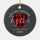 First Christmas Together Rustic Heart Personalized Ceramic Ornament is a great keepsake gift idea for a couple. Both sides of the ornament are designed with dark grey background and a red buffalo plaid heart on the center. The text is "our first Christmas together" in trendy handwritten script calligraphy lettering followed by couple's names and custom year.
