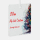 This festive first Christmas metal square ornament features a beautiful design that showcases watercolor colourful balls set against a lovely blue background . Additionally, it includes charming elements like a winter tree and delicate snowflakes, enhancing the overall seasonal theme of the ornament. On the back side is a photo of your baby.