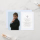 Baby blue frame, side by side photo invitations for your little boy's First Holy Communion. Elegant and classic with a simple cross and crisp text design. Decorative blue pin stripes on back of high quality card for a finishing touch.