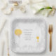 Adorn your food table with these First Communion Blonde Boy Paper Plates featuring a Silver Damask pattern.