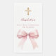 A white background color. Decorated with a large pink bow and a golden cross. Personalize and add the name and date.