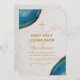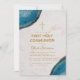 First Communion Boy Blue Geode Marble Gold Cross Invitation
