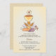 A gender-neutral First Holy Communion invitation features a chalice with Eucharist and cross, wheat, bread and grapes, all symbols of Communion. The background is tan with a darker tan border. The back has an abstract triangle pattern in shades of tan and cream.