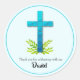 Shades of blue cross on leafy greens, perfect design for First Communion, Baptism, Christening, Dedication party favours stickers and more. MATCHING items in our store.