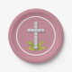 Pearl white cross on leafy greens on dusty rose paper plates in 7" or 9" size. Perfect design for First Communion, Baptism, Christening, Dedication or any religious special occasion. MATCHING items in our store.