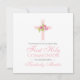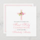 First Communion Cross with Pink Roses Square Invitation