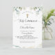 Elegant First Communion invitation with exquisite Eucalyptus greenery and watercolor stains. ideal for both, boy or girl First Communion. Modern elegant handwritten calligraphy details. Ability to add both ceremony/Sacrament and reception or brunch, lunch, dinner, reunion details. Back with beautiful watercolor background. Part of our "Elegant Greenery Eucalyptus Wedding and Events" collection with a variety of coordinating products available. Modern, elegant and simple style.