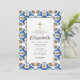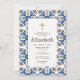 Composed of serif and cursive script typography. All against a backdrop of blue and white Mediterranean Spanish tiles