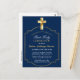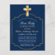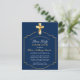 Celebrate your child's First Holy Communion with your loved ones by inviting your friends and family by mailing this elegant faux gold First Holy Communion Invitation Postcard. This design features a beautiful golden cross with a gold frame against a simple and classic navy blue background. Customise the text and font to your liking. Other fonts and styles available. Have a special request? We love to help. Contact us at the chat button above.