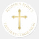 First Communion Gold Cross Monogrammed Name Classic Round Sticker