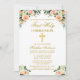 Elegant Watercolor Peach White Floral First Holy Communion Invitation includes peach roses, white flowers and greenery. Gold Cross.