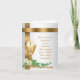 Image and illustration composition of gold chalice, ivy, white roses and gold text for child's First Holy Communion party invitation. Custom designed.