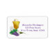 A First Communion address label with a gold chalice with Eucharist, grapes, a white candle and white lily on lace look background.