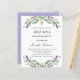 A white background decorated with lavender flowers and eucalyptus greenery. Personalise and a name and details.