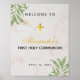 First Communion Marble Foliage Gold Cross Welcome Poster
