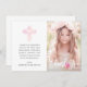 First Communion Pink Floral Cross Script Photo Thank You Card