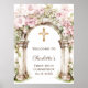 First Communion Pink Florals Arch Cross Welcome Poster