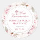Beautiful blush pink roses frame this elegant First Holy Communion envelope seal. A soft mauve pink cross also decorates this sticker. First Communion is written in a beautiful and traditional script font. your daughter's name is written in capital letters with the date below. You can also use it as a favour seal. This item is part of the Pink Rose and Peony collection. It contains templates to create your own invitation stationery, welcome signs, and party decorations. The let you spend more time enjoying your celebration and less time planning it!