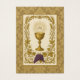 A beautiful and reverent First Holy Communion prayer card featuring a radiant gold chalice and IHS symbol surrounded by Eucharistic imagery of wheat and grapes, symbolising the Body and Blood of Christ. The background is adorned in a rich damask pattern, evoking the sacredness of the Sacrament. The reverse side includes the beloved Anima Christi prayer and personalisation for the communicant’s name and date. A keepsake of grace and devotion for this most blessed milestone.