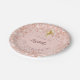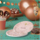 A rose gold background with an elegant rose gold confetti. The text: The name is written in dark rose gold with a large modern hand lettered style script. Personalise and add a date, name.
