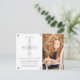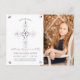 This First Holy Communion Save The Date postcard (post card to be mailed without envelope) features a grey chalice and wafer (holy communion) surrounded by an ornate cross with purple accents and the words "First Communion" written in an elegant font. Ideal for your girl's special religious occasion, the text and photo can be customised to your liking.