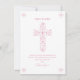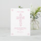 This modern First Holy Communion Thank You Card features an elegant drawn pink and white floral cross. Ideal for thanking guests for joining a girl's religious celebration, it can be customised with your child's name and a personal note. The background colour can also be changed to your liking.