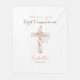 Elegant fleece blanket for your first holy communion with a floral cross on a simple white background. Personalise with text, name and date. Makes a thoughtful gift for confirmation.