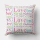 A gorgeous pillow featuring all the word describing love in 1 Corinthians 13: 4-7 each in pastel colours, each in a different font! Two sizes: 16 x 16 and 20 x 20 with a choice of fabrics: polyester or cotton or zipperless. (Shown on 20 x 20 cotton)