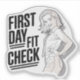 A bold black and white line art illustration featuring a confident, stylish young woman in a playful, sassy pose with a strong school vibe. The large text "First Day Fit Check" adds a statement feel, making it a perfect design for fashion lovers, students, and anyone excited about back-to-school season. Ideal for stickers, shirts, notebooks, and more – a must-have for Gen Z trendsetters.