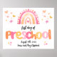 First day of Preschool poster with pink rainbow, photo prop, sign for first day at school picture.