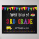 First Day Of School Sign | 3rd Grade Poster--Kick off your child's school year with a festive and colourful first day of school chalkboard sign! What a fun and memorable way to remember your child's first day of school. Customise the date for your first day of school and get ready for all those pictures!