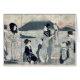 Print shows five women, four men, and a child in a ferry; one man is poling the boat and one man is a porter seated at the back of the boat with baskets of eggplants, the women, child, and a man holding a falcon on his left forearm, and the fourth man may be a hunting party being ferried across the river. View of Mount Fuji in the background. It is generally agreed that he started his career as a pupil of the painter Toriyama Sekien. His early known works are actor portraits and theatre programs.Since 1791 Utamaro concentrated his work on single portraits of women. He took his models from the street or from the pleasure district Yoshiwara. The stories of his love affairs with the ladies of the "licensed quarters" are said to be abundant.