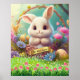 First Easter Cute Rabbit in a Basket Personalised Poster
