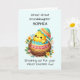 Celebrate your great-great-granddaughter’s first Easter with a personalised touch that makes this card even more special! Featuring an adorable chick breaking free from its shell, surrounded by vibrant spring flowers, this design symbolises fresh beginnings and the beauty of new life. The soft pastel teal background enhances the joyful, whimsical feel, making it perfect for her first Easter. Personalising the front with her name adds a unique keepsake quality, making this card even more meaningful. Inside, warm wishes extend your love and joy, creating a lasting memory of this milestone occasion!