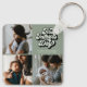 First Fathers Day Groovy Retro Three Photo Gift keychain in sage and green colours.