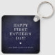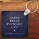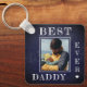 Best daddy ever Happy First Father's Day bold white typography on dark navy blue rustic chalkboard new dad personalised double sided keychain with your photo, text, and signature.