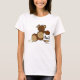 "TEE FOR AN I" - I do not have words for poetry. - I'll simply show you the singed teddy bear I still hold to me dearly. - I do not comprehend. - Idle love strokes don't soothe his skin. - Torched on yesteryear's version of kin. - Missing an arm and captioned to 'feel', he stares blankly at the onlookers and wonders the appeal. - Astonished by the embarrassment or enamoured with the peel? - as the flesh pulls back and he steps as he heels - harder - all that's left and the scars will reveal - life - the expenditure, the adventure - and the draw back of tears - although he's drowning in them now - someone punctured the seal - and there are no words for poetry. - So I wear him. - "Feel". - Sara McDonald - 2009