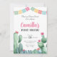 Fiesta theme birthday invitation. All the text is editable, use it for any Fiesta celebration. Features colourful papel picado, cactus, and florals.
