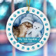“My First Hanukkah.” Celebrate your new pet’s arrival this past year! A turquoise blue banner with your pet’s name and year in whimsical white typography overlays your kitten or puppy’s custom photo. A playful border of turquoise blue paw prints and Stars of David against white surrounds it. Feel the warmth and joy of the holiday season whenever you display this simple, stylish and modern personalised photo keepsake ornament. Choice of ceramic, metal, glass or premium metal frame materials and a circle or square shape. Perfect for the newly proud pet parent(s)!