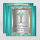 First Holy Communion 1st Girl Boy Cross Teal Blue Invitation