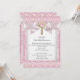 First Holy Communion 1st Girls Cross Pink Lace 2 Invitation