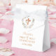 Stunning First Holy Communion favor box featuring boho floral & greenery garland with rustic cross and chalice. Rosary beads featured on the back of the box with customizable text template to include your own details, the background can also be changed to a color of your choice. The perfect 'thank you' gift box for your guests.