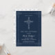 This elegant and classic first holy communion invitation features a drawn white cross with a matching detailed border. The example is shown in navy blue, but the background colour can be customised to your liking. Perfect for your special religious occasion, the text can also be personalised for your event.