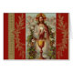 This is a custom designed First Holy Communion Invitation with Jesus holding the Eucharist with the Chalice in front of him. He is surrounded by angels and flowers. The background is a deep red with gold leafing and ribbon. The inside has a gold lace background. All text and fonts may be customised.