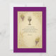 Elegant First Holy Communion invitation featuring traditional Catholic symbols of the Blessed Sacrament: a radiant chalice marked with “IHS,” clusters of grapes, and stalks of wheat, framed in ornate gold scrollwork. The text is set against a parchment-style background bordered in violet, making it perfect for inviting loved ones to a most sacred and joyous occasion. Ideal for girls or boys, with fully customisable text to suit your family's celebration.