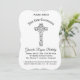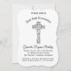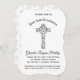 Elegant Black and White First Holy Communion Invitations for boy or girl. The beautiful line art cross has the symbol for the Eucharist at the cross section.